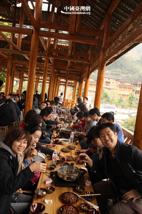 風水橋上吃長桌席,爽!(中國臺灣網 楊永青 攝)