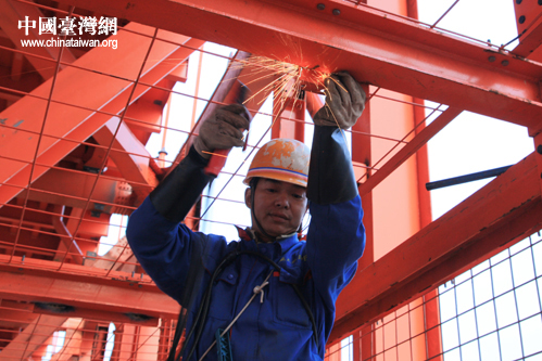 工人在為大橋做維護(中國臺灣網 楊永青 攝)