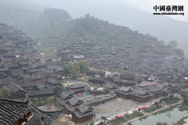 從觀景臺上俯瞰苗寨,尤感氣勢磅礴(中國臺灣網(wǎng) 楊永青 攝)