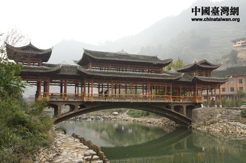 大家記好哦,有風(fēng)水橋的地方一定是苗寨(中國臺灣網(wǎng) 楊永青 攝)