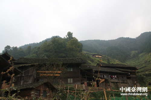 苗寨內(nèi)建筑大多是木制吊腳樓(中國臺灣網(wǎng) 楊永青 攝)