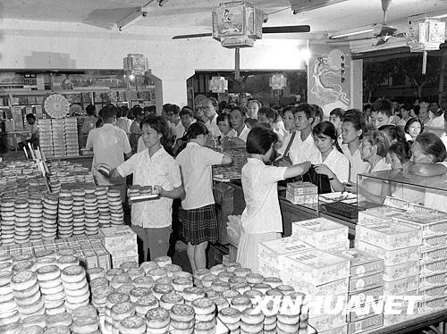 1978年中秋佳節,上海各食品店月餅上市。今年上海中秋月餅的供應數量多,質量高,品種豐富。新華社記者張平攝