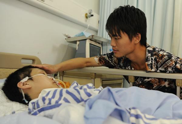 劉冬琴的丈夫范楊智一臉憔悴,他輕撫著妻子的額頭,安慰著她。面對突如其來的變故,這個27歲的貴州小伙不離不棄。連續高溫悶熱的天氣,冬琴久臥病床,卻未長一個褥瘡,這離不開丈夫的細心照顧!