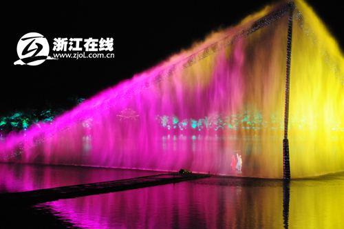 今天晚上,參加由浙江省委外宣辦、省旅游局和浙江在線新聞網(wǎng)站舉辦的“詩(shī)畫(huà)江南——全國(guó)知名網(wǎng)絡(luò)媒體浙江行”采訪團(tuán)就現(xiàn)場(chǎng)感受了一番“印象西湖”的美麗。