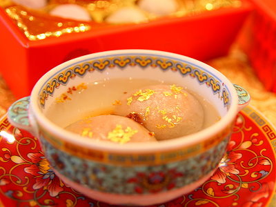 中新社2月23日電 據(jù)臺灣《聯(lián)合報》報道,臺北市有間以宮廷美饌聞名的餐廳,元宵節(jié)前夕推出養(yǎng)生元宵系列手工湯圓,其中一款獨家打造的金箔元宵看起來貴氣十足,店家以金玉滿堂(湯)取其諧音要祝賀元宵吃到此款湯圓的貴客們。