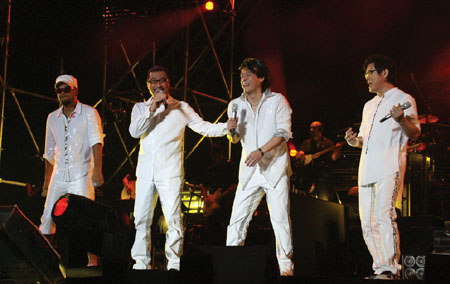 四人集體出場時,為觀眾奉獻(xiàn)了老歌與新歌大拼盤。從歌迷的反應(yīng)來看,新歌顯然不如老歌“吃香”,幾乎每首老歌都能引起全場大合唱,當(dāng)他們演繹《童年》、《光陰的故事》、《戀曲1990》《鬼迷心竅》等老歌時,不僅帶著“70后”回到青澀的初戀時代,也令“60后”、“80后”加入音樂狂歡,即使“90后”的歌迷看到老一輩觀眾如此癡情時,他們在聲嘶力竭合唱后仍不過癮,甚至離開座位翩翩起舞。