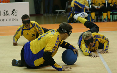 好運北京2007年國際盲人門球邀請賽今天上午在北京理工大學體育館拉開戰幕。B組的瑞典和芬蘭隊首先進行開戰。經過激烈的較量,實力強大的瑞典隊以14比4大勝芬蘭隊。