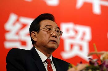 兩岸經(jīng)貿(mào)論壇舉行閉幕式 4月15日,兩岸經(jīng)貿(mào)論壇在北京舉行閉幕式。這是中共中央臺灣工作辦公室主任陳云林在閉幕式上講話。 新華社記者 王建華攝
