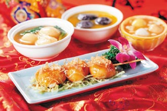 今年六福客棧把墨魚汁與外皮結(jié)合,蟹肉當(dāng)內(nèi)餡,成了新潮的“黑元宵”,臺中福華飯店則把黃椒與外皮結(jié)合,起司與蓮蓉為內(nèi)餡,成了從里到外都“是金A”的金元宵。