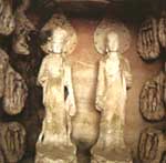 北山石刻以佛灣造像最為集中,共編290號龕窟。在長300多米、高7米的崖壁上,有碑碣6通,題記和造像銘記55則,經幢8座,陰刻“文殊師利問疾圖”一幅,石刻造像264龕窟。佛灣佛像雕刻精細,體態俊逸,風格獨特。“心神車窟”中的“普賢菩薩”造像精美,被譽為“東方維納斯”;“轉輪藏經洞”被稱為“石雕宮闕”;“韋君靖碑”、“蔡京碑”、“古文孝經碑”為世所獨存,既是書法珍品,又可補史料之遺缺,價值極高。佛灣石刻分南北兩個區域,南區大多是晚唐、五代作品,北區大多為兩宋時期作品。晚唐時期的作品,人物造型端莊豐滿、氣質渾厚、衣飾簡樸、線條流暢。五代時期的作品,玲瓏精巧、多彩多姿,衣著服飾由簡到繁,逐漸擺脫了外來文化影響,具有石刻造像過渡期的特征。兩宋時期的作品,民族特色已十分突出。