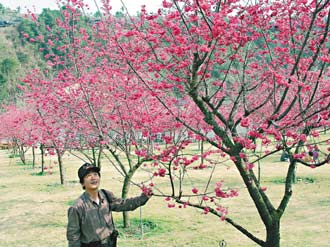 武陵農(nóng)場(chǎng)現(xiàn)值櫻花競(jìng)放時(shí)節(jié),山坡上只見(jiàn)深淺不同的紅,滿(mǎn)山奼紫嫣紅春意繽紛,美景醉人。