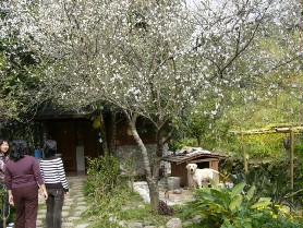 南莊鄉(xiāng)田美村2鄰22之3號蘭亭咖啡民宿占地9公頃,除了庭園、木屋,屋后是偌大的桃、李果園,主人許金桂當(dāng)初開墾時,保留了原有的果樹,融入庭園景觀,元旦后梅花盛開,一樹白華,風(fēng)過處片片白雪飄落,美景醉人。